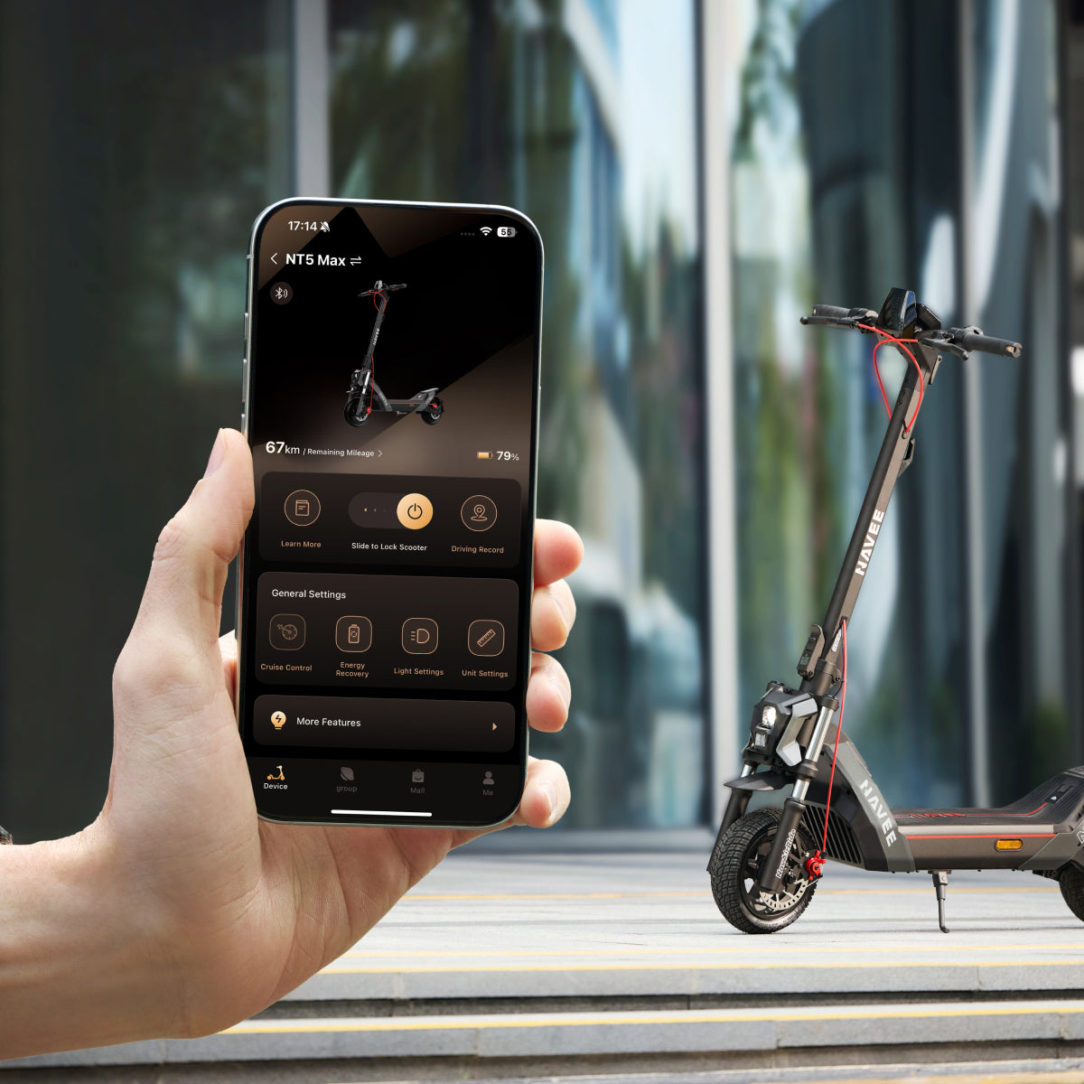 Enjoy easy, keyless security with the NAVEE SmartKey. Once paired via Bluetooth, your scooter unlocks when you approach and locks as you walk away.