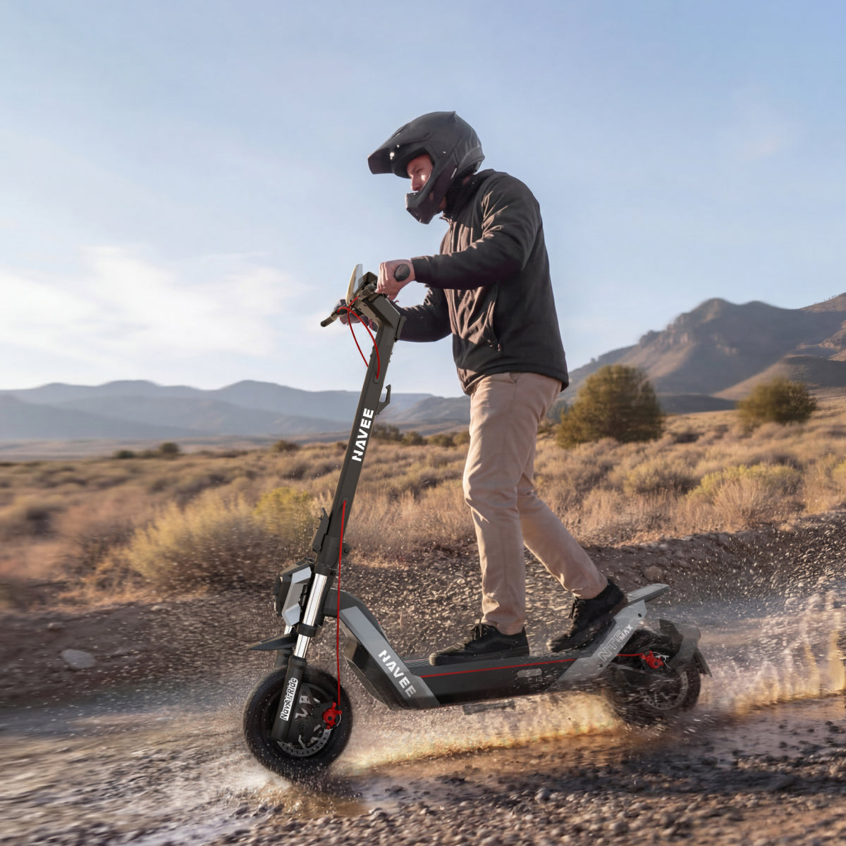It has an IPX6 waterproof rating, meaning this offroad e-scooter can withstand heavy splashes and light rain—great for all-weather riding.