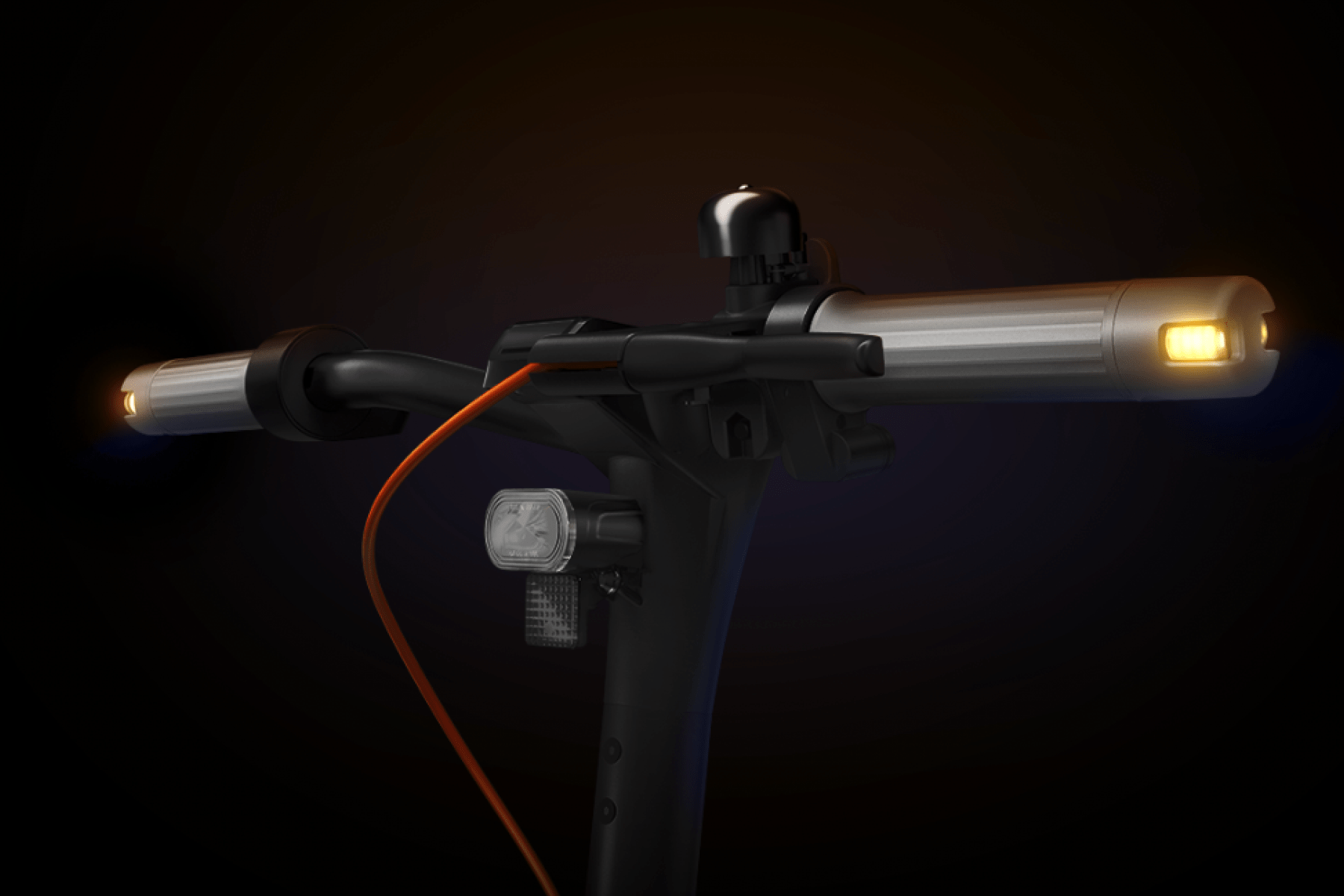 The curved, ergonomic handlebar with anti-bacterial shock-absorbing grips offers a secure, cushioned hold for all-day riding comfort.