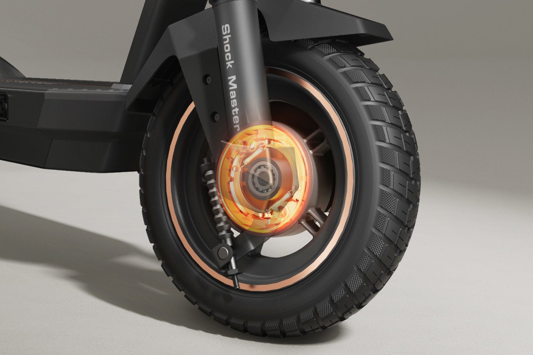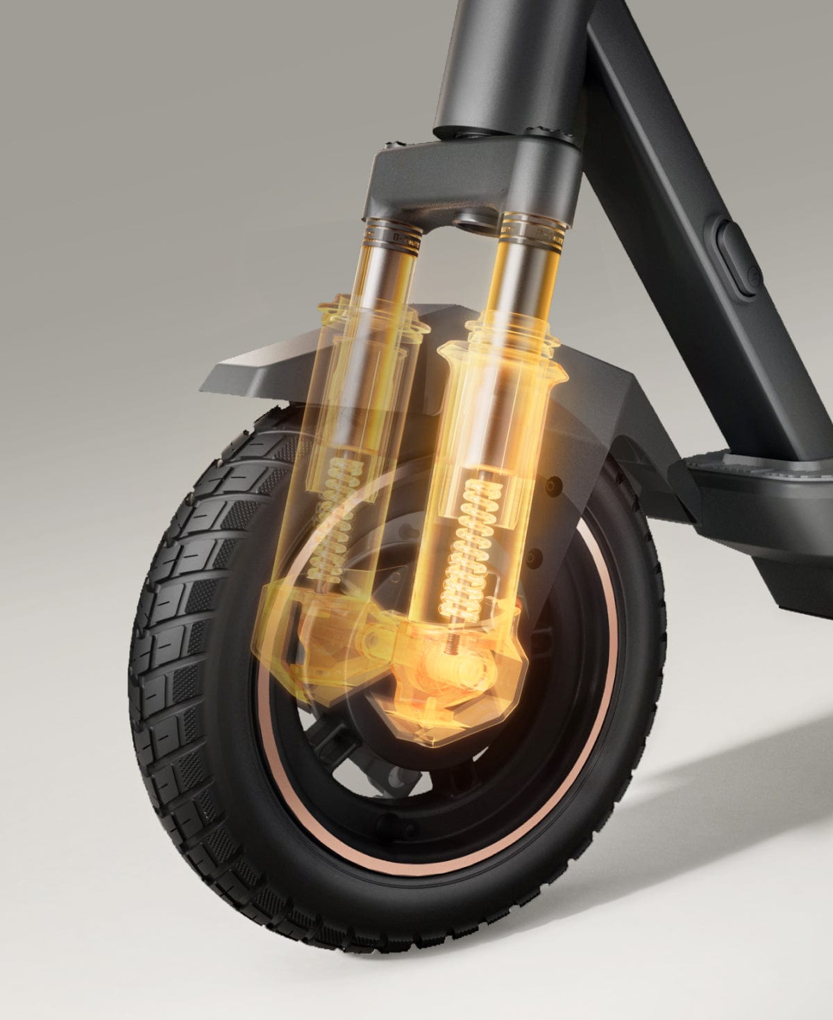 10” tubeless tires provide comfort, stability, and puncture resistance for a smooth, worry-free ride on any terrain.