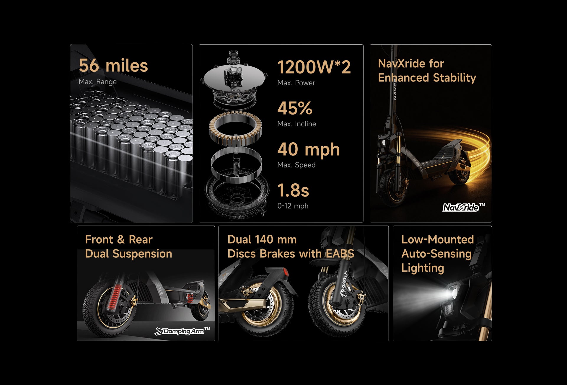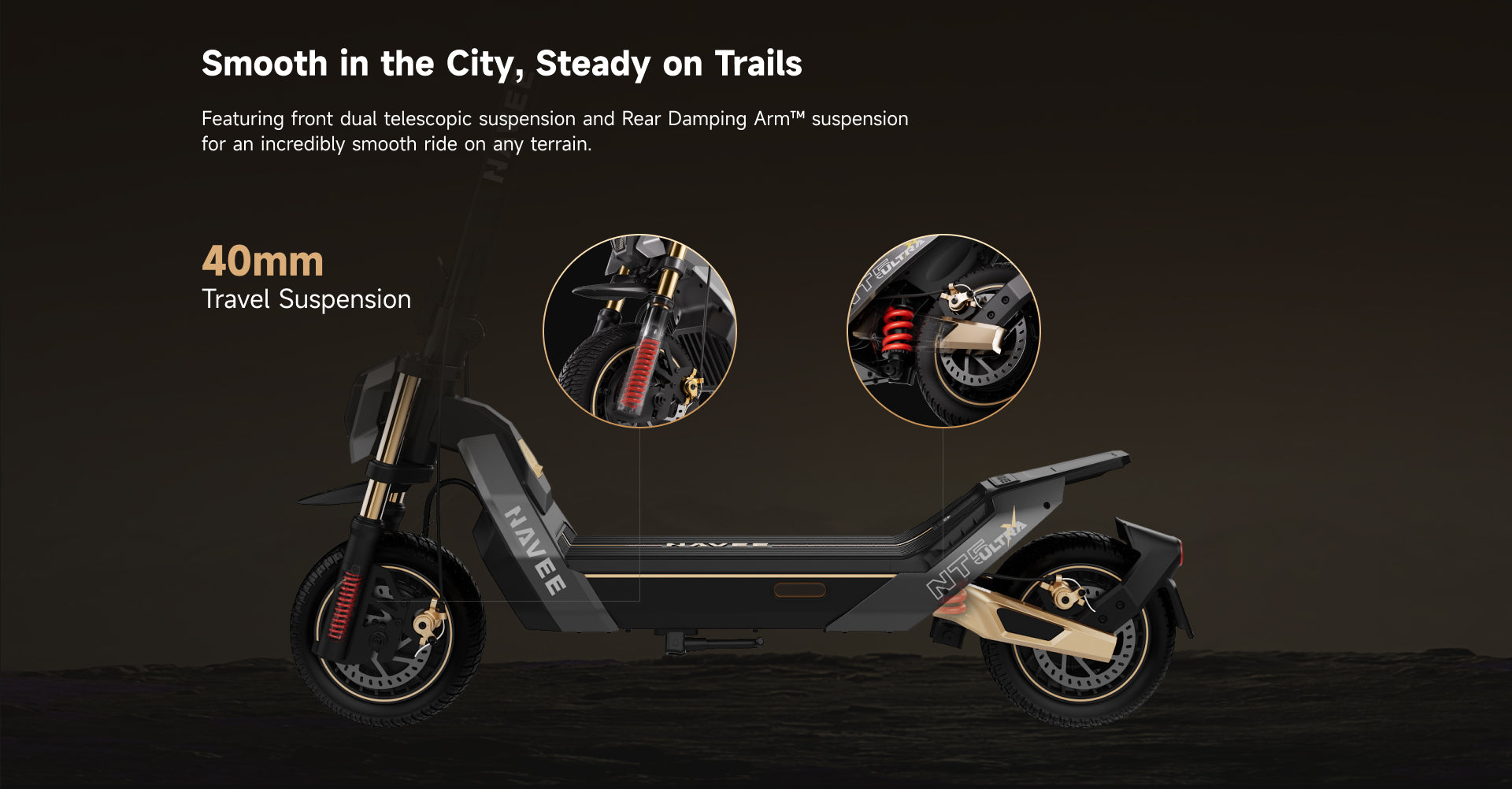 The XT5 Pro features the Damping Arm™ patented suspension system, offering advanced shock absorption that smooths out bumps for a safer, more comfortable ride.