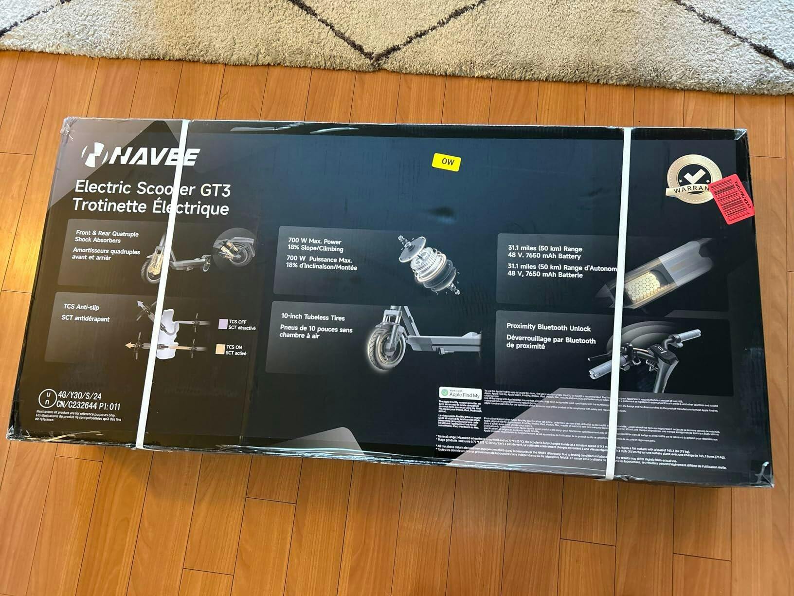 NAVEE GT3 Electric Scooter combines style and performance with a 700 W motor, 31-mile range, and 18% hill-climbing ability. Its quadruple shock absorption, dual brakes, and advanced TCS ensure superior safety and comfort, while the sleek design with gold accents adds a touch of elegance to every ride.