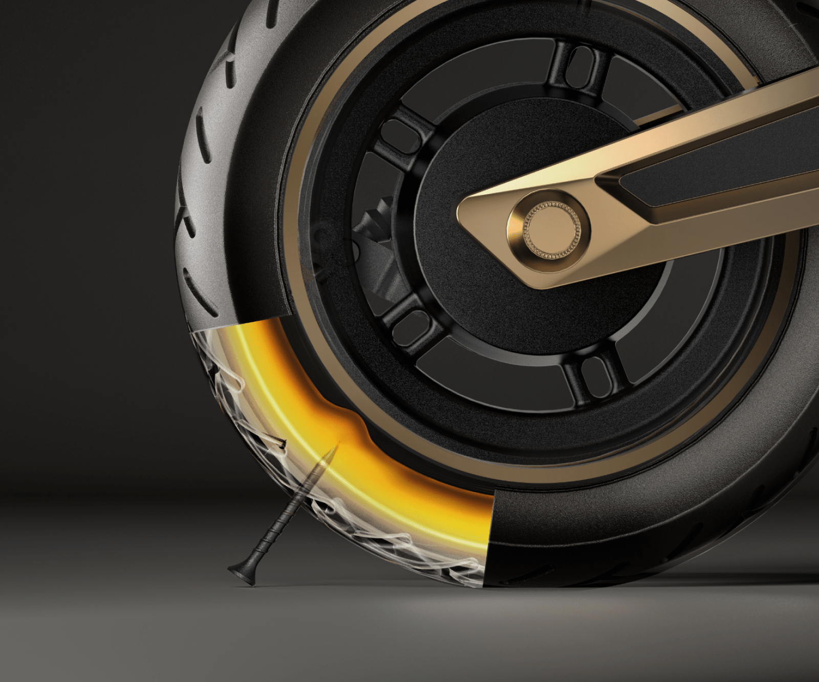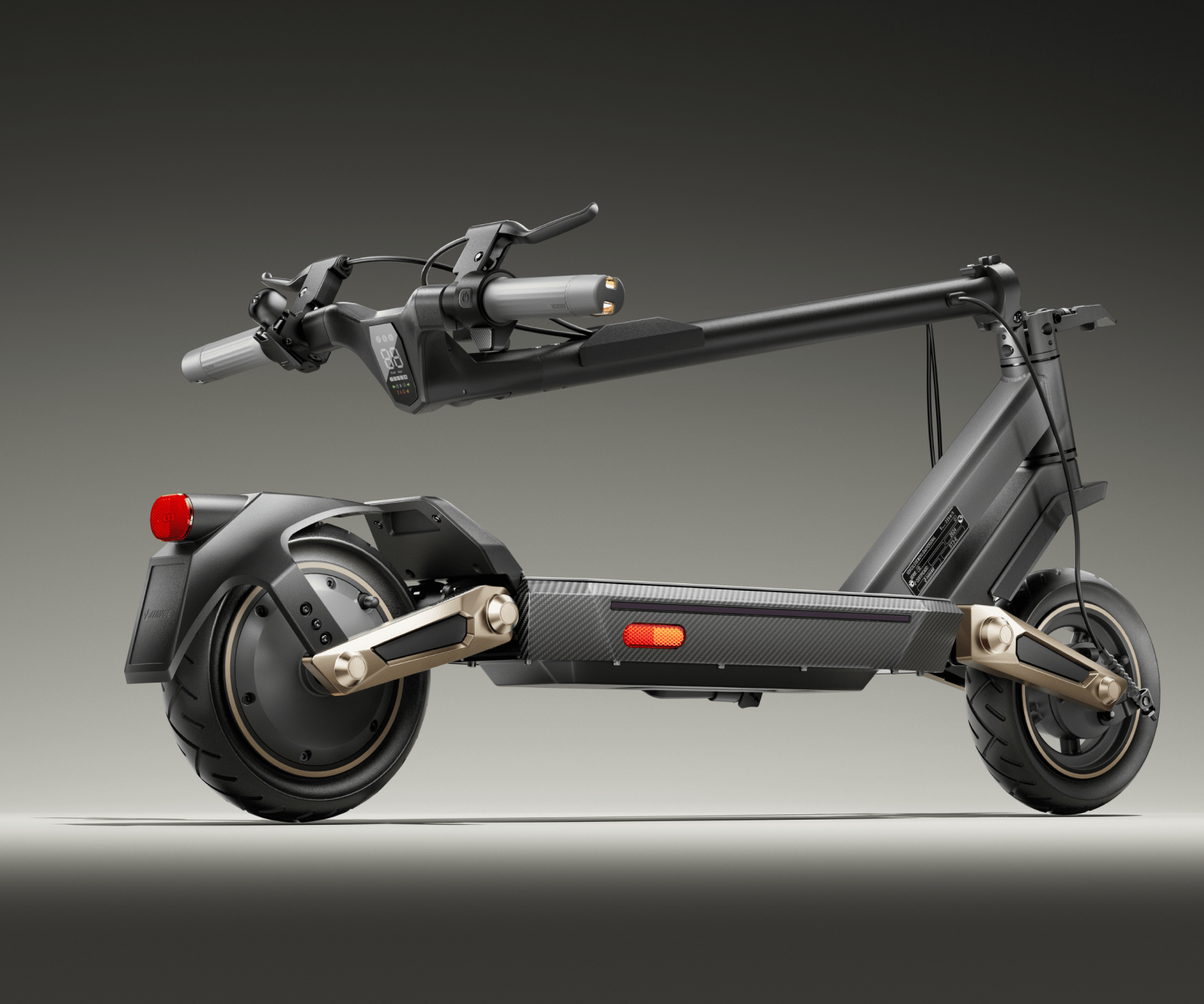 Bold design meets powerful performance. Featuring four golden damping arms for unparalleled shock absorption and an eye-catching aesthetic, this high-performance electric scooter is built to conquer any terrain with confidence.
